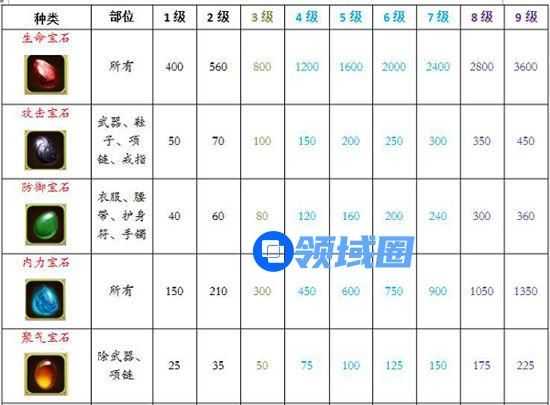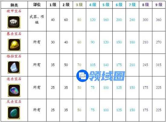 目前仅收集了1-9级宝石属性,欢迎各位进行补充。