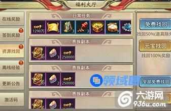 每日资源找回可以一键找回前一天未完成的任务、副本经验和道具奖励,元宝找回更能找回多倍奖励。