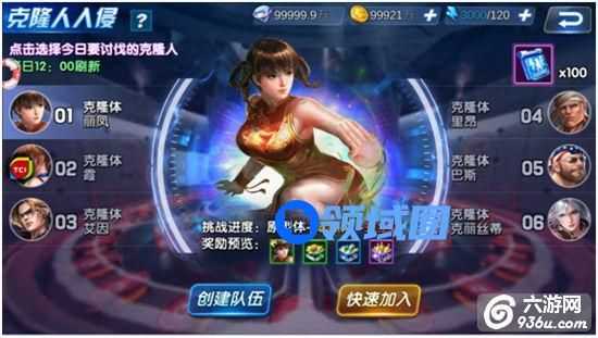 克隆人入侵是《生死格斗5无限》游戏中格斗家碎片产出主要途径之一,每天12点刷新6个格斗家,玩家可选择其中一个进行战斗,挑战胜利后,玩家会获得该格斗家的碎片及其它奖励。一个格斗家共计三关,三关全通后队伍内全通关的玩家便可多获得一个碎片,即队伍内通关人数越多奖励越多