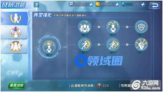 战队的潜能点共分3个阶段,第一个阶段为阵型强化、第二个阶段为职业克制、第三个阶段为职业强化。每个阶段投入的潜能点达到指定数量,方可解锁下一个阶段。