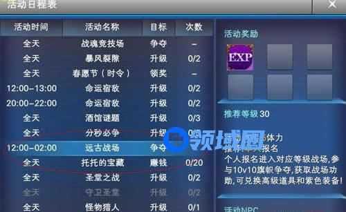 也可以在活动列表中选择远古战场,点击右侧“战场报名”按钮参与报名。