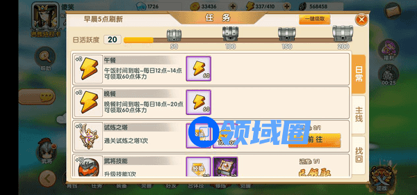 5.第五个方式就是在日常任务中可以领取午餐和晚餐领取60点体力。