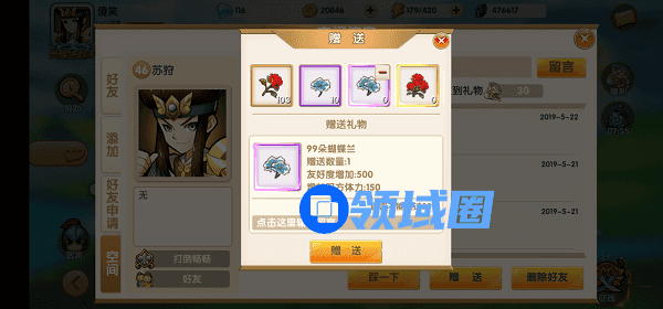 4.利用好友送花来兑换体力。可以送别人花来获得体力,也可以让好友送自己花获得体力。但是每天送花是有体力限制的总共不能超过1000点。花的获取在日常任务中可以找到基本上做完任务送的话体力也就够了。也可以找一个好友互相送花保证花是够的。