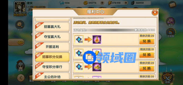 3.第三点是在活动中心中利用招募积分兑换。招募积分是在招募英雄的时候给的。兑换有次数限制总共只能召唤20次。