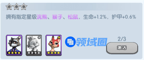 拥有指定星级浣熊、猴子、松鼠,生命+1.2%,护甲+0.6%