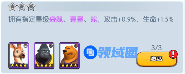 拥有指定星级袋鼠、猩猩、熊,攻击+0.9%,生命+1.5%