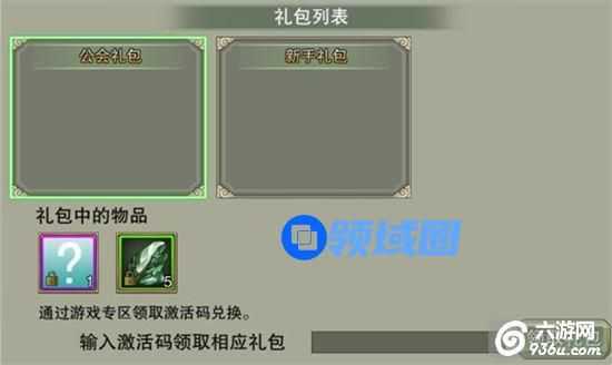 4、礼包领取界面可输入激活码领取对应礼包。