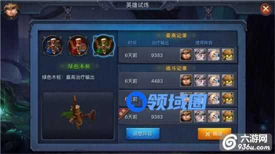 绿色木桩试炼,是用来检验治疗输出能力的。通过挑战绿色木桩,可以检测英雄的治疗输出能力。同红色木桩原理一样,每次治疗输出的数值会被记录下来,我们可以通过绿色木桩试炼来看到战队的治疗输出能力的不断提高。
