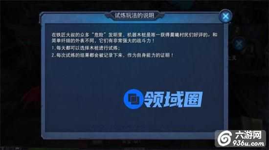 在迷雾世界的村庄主城中,有一根木桩可以用来检测英雄战队的实力。玩家在木桩处进行试炼来检测战队的输出、治疗等能力水平,是一个很好的练习场所。