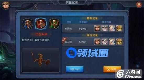 红色木桩试炼,可以用来检测战队中英雄的伤害输出能力。每次战斗结束时伤害输出的数值都会被记录下来,玩家可以通过不断地试炼来看到自己的成长。