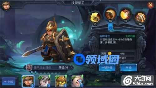 英雄的技能通过在技能导师处花费技能卷轴学习获得,同时我们也可以在这里通过花费金币进行英雄的技能升级。