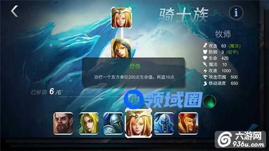 技能:治愈(治疗一个友方单位500点生命值。耗蓝10点)