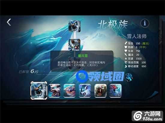 技能:暴风雪(能召唤出若干次冰片攻击,对目标区域内的单位造成一定的伤害)