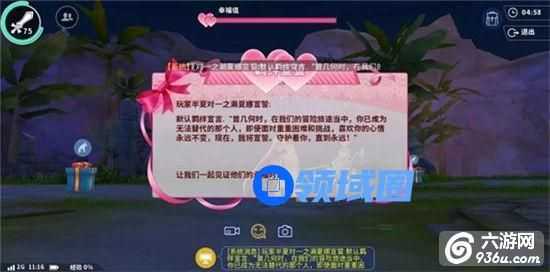 6、幸福值满后,场内将刷新祝福宝箱,可获得一定道具;宝箱开启完毕后系统宣布仪式礼毕,恭喜两位结为羁绊伴侣,从此守护直到永远。
