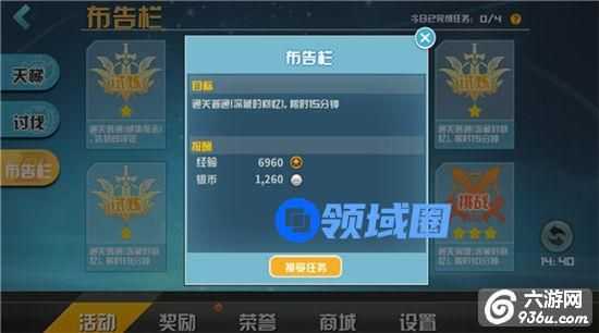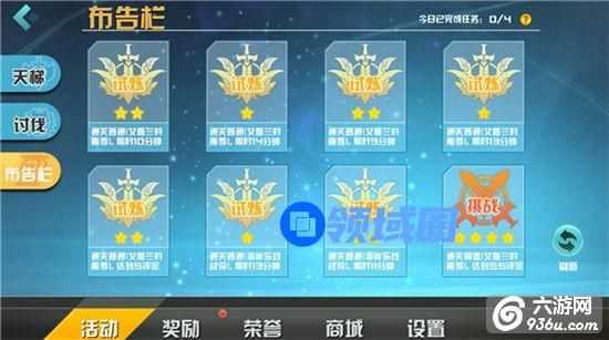 1、[布告栏]将会同时出现8个不同目标,不同星级的任务,以便进行挑选。