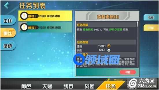 《剑之荣耀》日常任务划分为主线任务、事件任务、活动任务。
