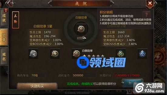 完成成就可获得积分,用来升级成就勋章。获得生命、攻击属性。