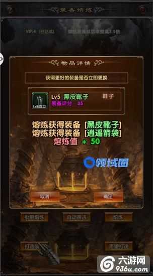 熔炼的时候注意千万不要拿低等级的和高等级的熔炼,不然熔炼出来的会有低等级装备,比如5个LV5级的和一个LV1级的装备,合出来的可能是LV1级的装备。每个品质相同的熔炼出高等级的几率更高!白色和白色的一起,绿色和绿色的一起,蓝色和蓝色的一起以此类推。