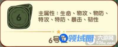 右上角的6号位的主属性有:生命、物攻、物防、特攻、特防、暴击、韧性