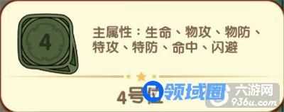右下角的4号位的主属性有:生命、物攻、物防、特攻、特防、命中、闪避