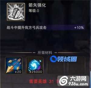 要求英雄等级为31级,材料为精灵的箭和战魂,每个英雄都有一个觉醒技能,这个技能可以说是整个英雄的核心,在战斗中配合相应的兵种,兵种会获得强大的增幅!