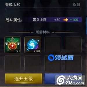 英雄的等级限制于玩家也就是领主的等级,为了更好地属性,英雄等级最好和领主等级持平。材料为英雄经验和战魂。