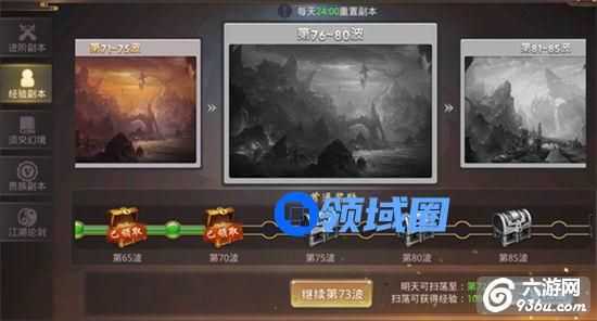 经验副本还有一键扫荡功能,玩家可以对已通过波数进行一键扫荡并获取奖励,首次通关新波数都会获得首次通关奖励,每5波还会有额外奖励。