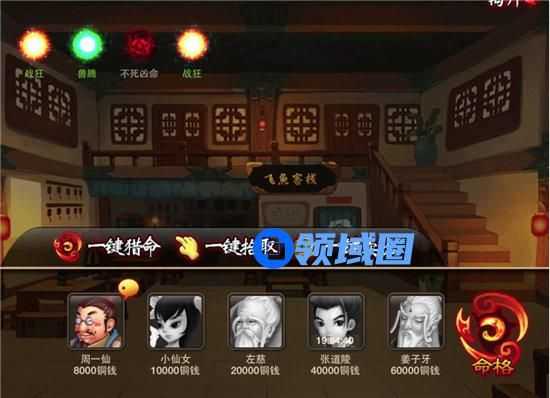 猎命系统开启后仙友们可以进入飞鱼客栈通过点击npc头像进行猎命。猎命需要消耗铜钱,并且根据npc的不同依次提升。消耗铜钱越多的获取高品质命格的几率更高。