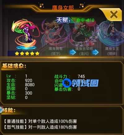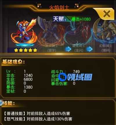 小编分析:作为一个偏向于快速升级暴力份子来讲,首选必然是“火焰剑士”,天赋暴击+1080的伤害配合对前排敌人造成130%伤害的怒气技能,简直犹如地狱神镰,推图的时候可以刷刷刷收割一大片哇~~~~“宝贝龙”以及“鹰身女郎”就更符合策略流的玩家偏爱~~当然,在游戏后期,系统会随着福利发给大家更多的高级卡牌,所以在过度期,小编力推“火焰剑士”哦~!