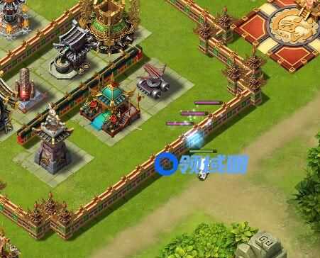 但是会因为射程不够而攻击墙,不过如果加上射程的金宝,画面效果就会变成下面这样: