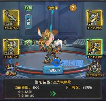 装备是战力重要组成部分,品质高到低金-红-橙-紫-蓝-绿;