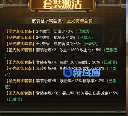 紫色品质之上的装备有套装效果,会带来额外的属性加成;