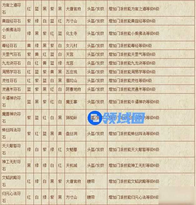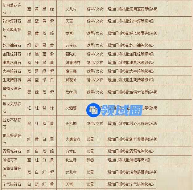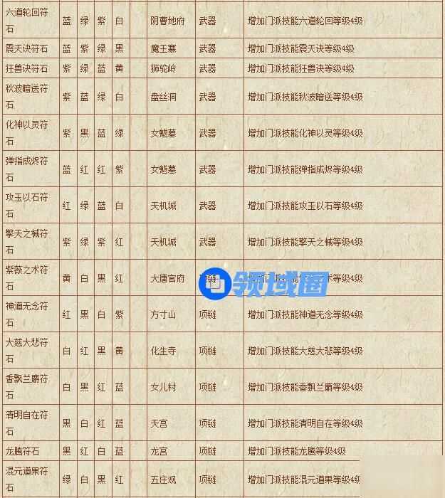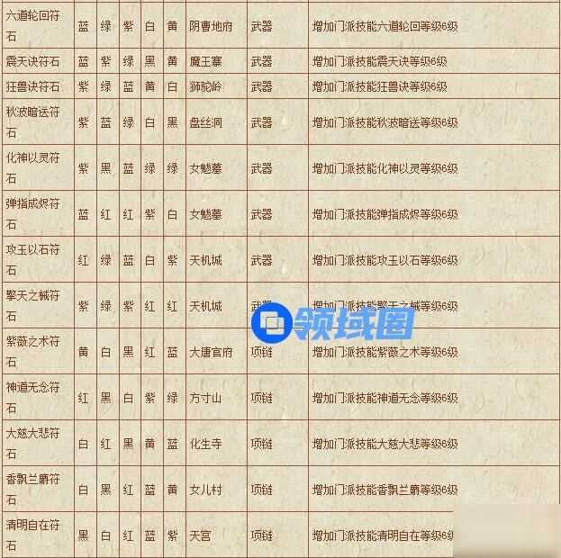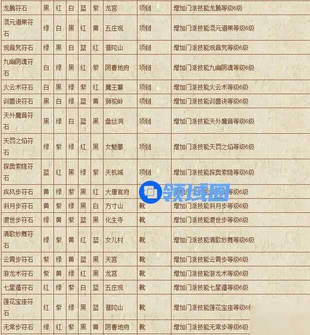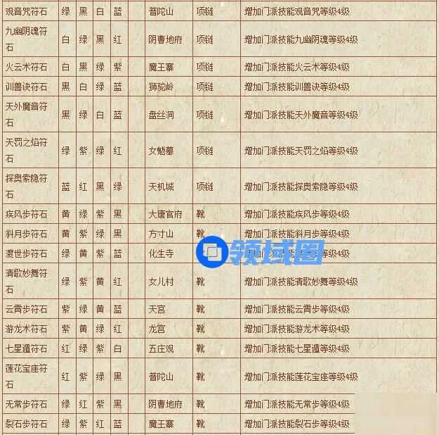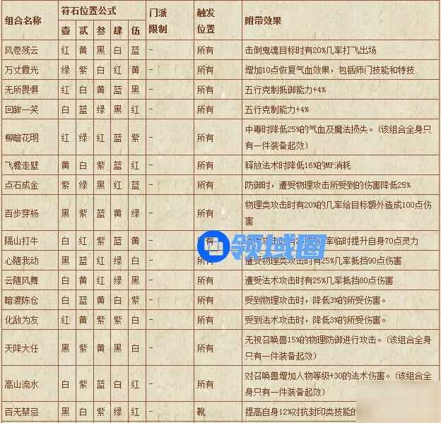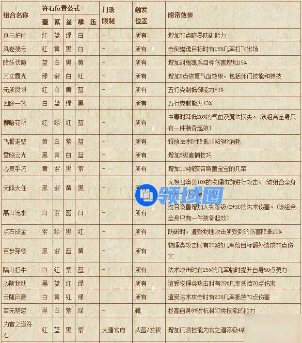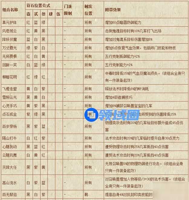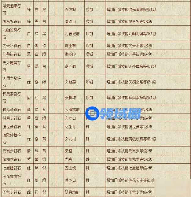 梦幻西游符石组合表: