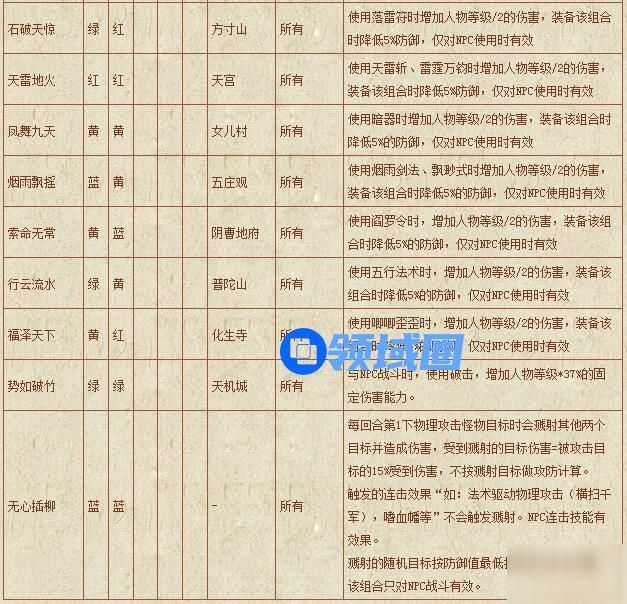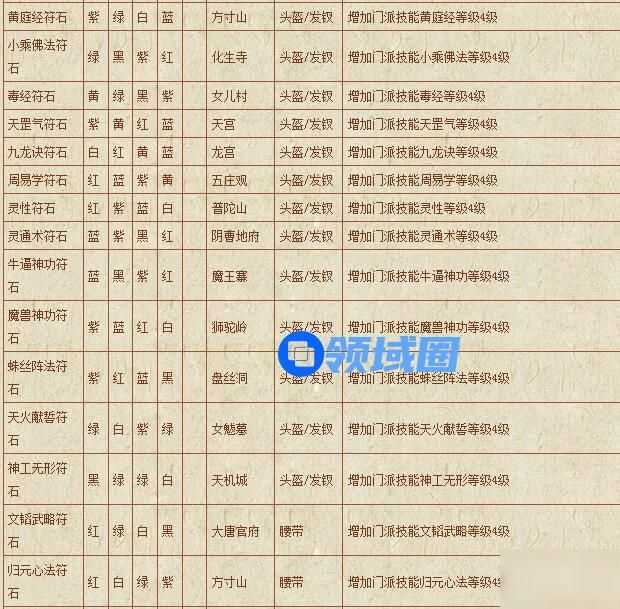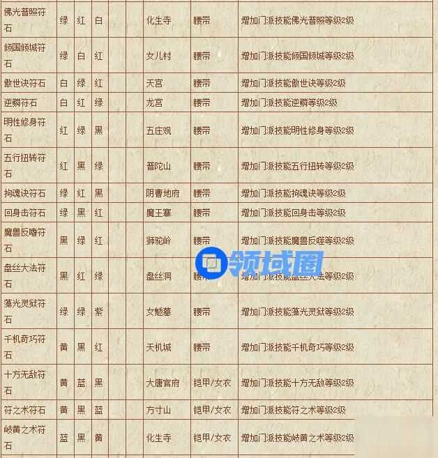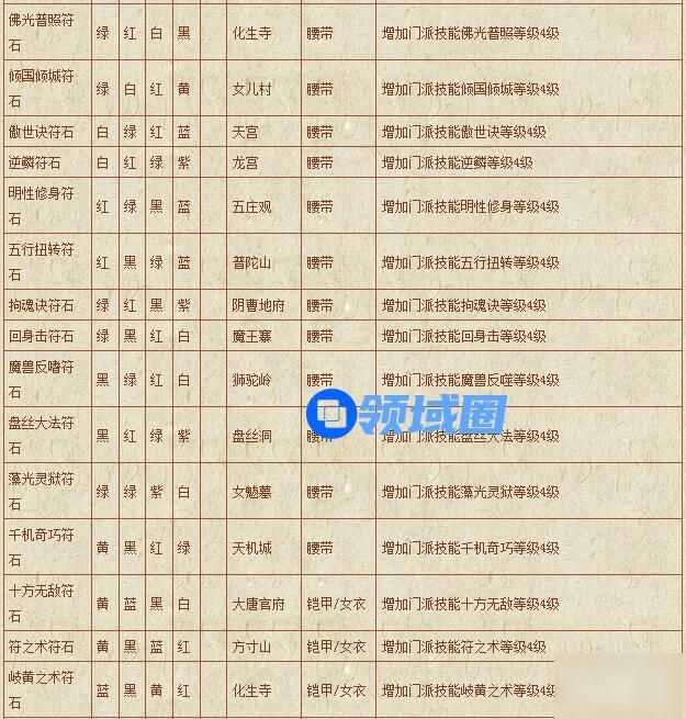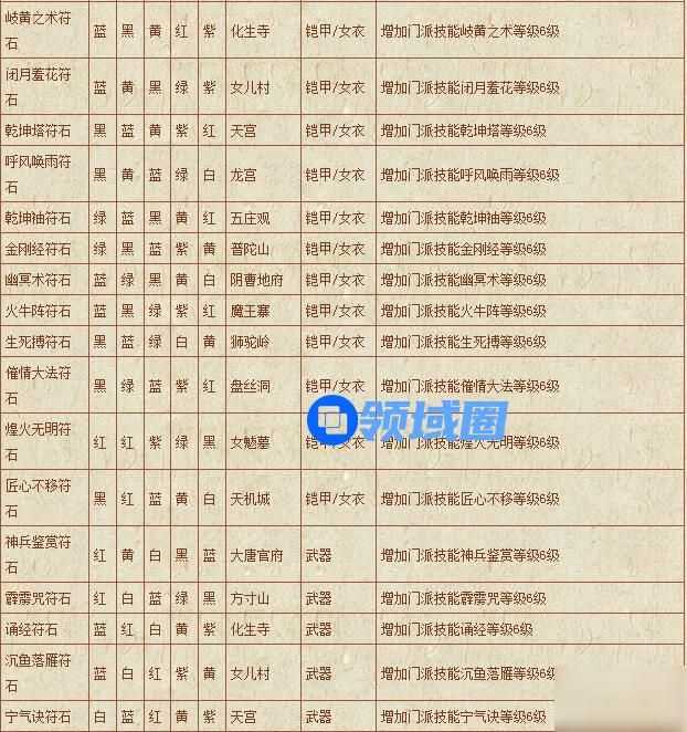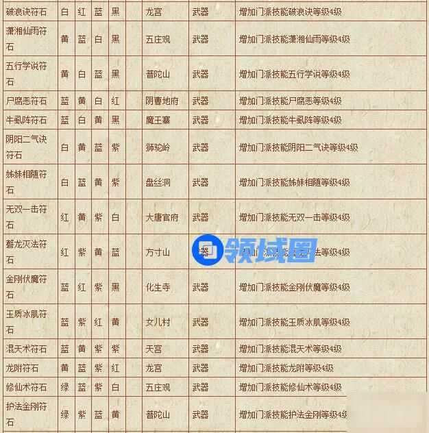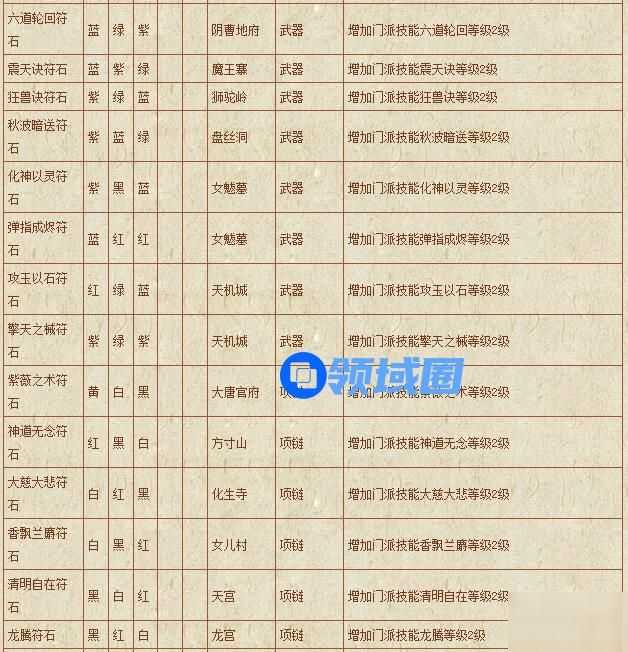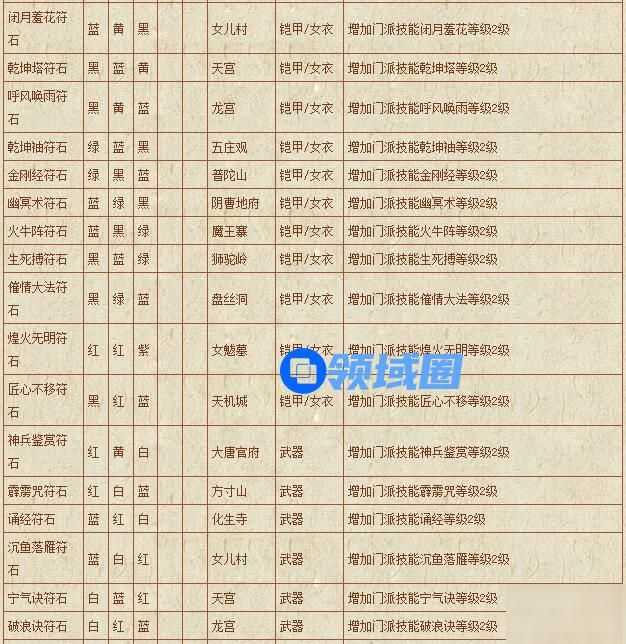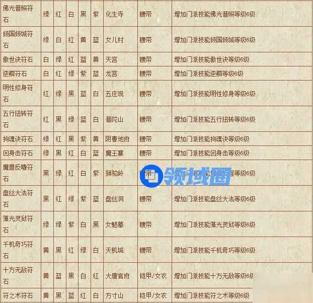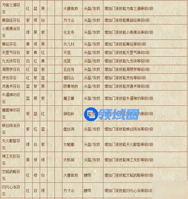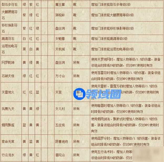 梦幻西游符石组合表: