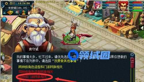 三、点袁守诚,在弹出对方中选择“同种族门派转换相关”