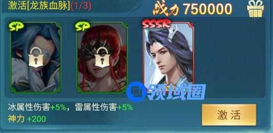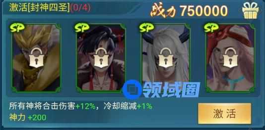 属性:所有神将合击伤害+12%,冷却缩减+1%,神力+200