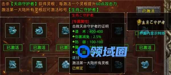 灵根天命由地图天命守护者掉落,每个大陆的天命守护者都不同,掉落的生肖等级不同
