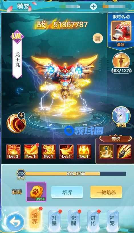 培养:消耗培养石提升等级,培养石可通过妖兽塔和萌宠副本获得