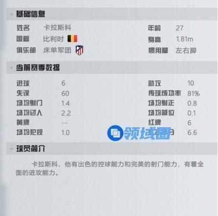 卡拉斯科是很优秀的左边锋,其禁区刺客.传奇这一特性更是这位球星在《足球天才》的亮点之一。合理利用这一特性,在对战中往往能达到意想不到的效果。对于各位经理人来说,在游戏前期,也是一个非常强而有力的球星。