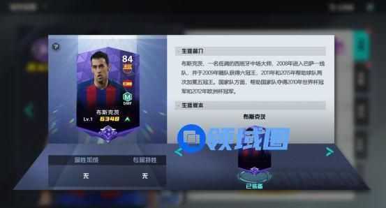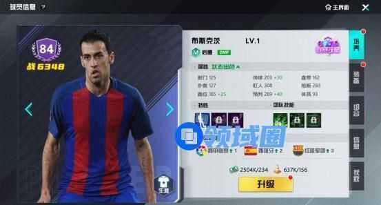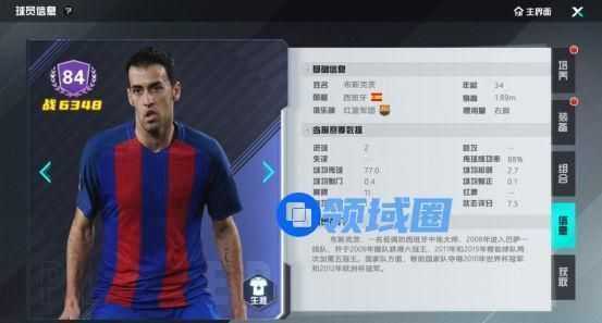 目前游戏中的布斯克茨初始品阶是联赛球星,根据规则一样可以进阶到世界世界球王的品阶。评分84,初始战力6348,也是数据耀眼的选手。
