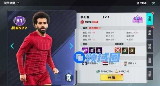 萨拉赫的初始卡面品阶为联赛球星,在后期培养下也可以达到世界球王品阶。初始战力是6577,评分高达91。正如前文小助理所提到的,他在游戏中也是当之无愧的强大边锋。