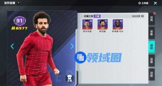 当球场上有菲尔米诺、萨拉赫、萨迪奥· 马内时就会触发组合羁绊“红箭三侠”。阵容也会获得基础加成。