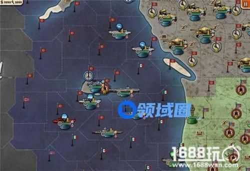 2)接下来选择征服模式下1945北美,第一次选美国,重点是注意发挥AI积极性,开局时东线战场最角落上的兵要撤退下来,固守纽约那个4级首都附近即可,这么做的目的是扩大加拿大的进攻面积,同时减少防御损耗,战争最开始阶段以固守为主,让加拿大多消耗,防守时多用大炮和火箭炮,同时以步兵、装甲车作为每轮防御时的肉盾,减少主力部队的耗血;西线阿拉斯加采用龟缩战术,最上面角落的兵一定要退下来,沿海的兵撤上去,防御3级城市附近那3块有战壕的地即可,同时建造一个2级工业城市,建造大炮和坦克固守;取胜的关键在于尽快搞定小日本;西线本土的兵不要太快冲入加拿大,让AI消耗兵力防守,当AI主力部队消耗殆尽的时候迅速从沿海冲入阿拉斯加;战争至此大局已定。此外本关有限的几艘海军舰船不要主动出击,停靠在沿海做肉盾延缓敌军对陆地的进攻即可。