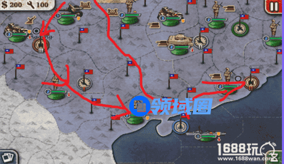 东路军:步兵,装甲车灭掉火箭炮。指挥官,装甲车(灭掉火箭炮)跟进。