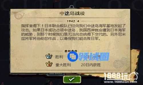 以上就是世界征服者2中途岛战役攻略,中途岛战役为美军的反击奠定了基础。不过一开始选择同盟国的玩家可能对海战并不是很了解,只需要多打几次就能熟练使用各种军舰了。