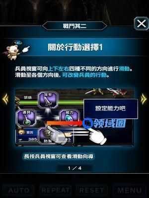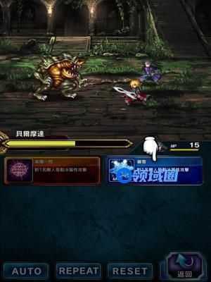 AUTO:自动进行战斗。开始自动的回合会按照设定好的行动进行战斗,没有设定则会进行攻击。发动技能第二回合只会进行攻击。
