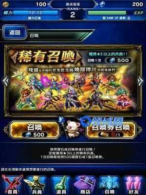 召唤就不用多介绍了。就是抽卡抽人物啦。其中分为宝石召唤与召唤券召唤,不论哪种召唤,召唤10次以后必能获得3星甚至4星的稀有兵员。着迷小编运气很好,第二次都开到了四星人物。