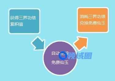 三界功绩累积值每累计达到300点,就会生成1个可兑换的免费仙玉。