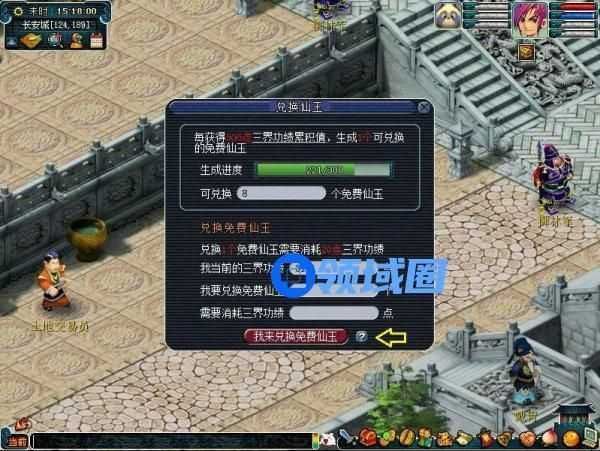 长安城(120,190)善赏恶罚NPC为嘉奖自强奋发的玩家朋友,增加兑换免费仙玉的功能。