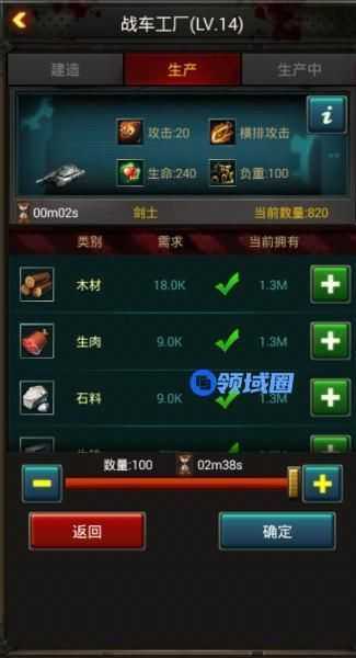 在城内建筑点击训练营,可以进入部队生产和治疗界面,建造士兵需要消耗一定的资源,高等级的部队需要高等级的训练营才能解锁,升级训练营等级还可以减少部队生产时间。